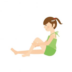 座ったまま足を延ばし、前屈してみてください。